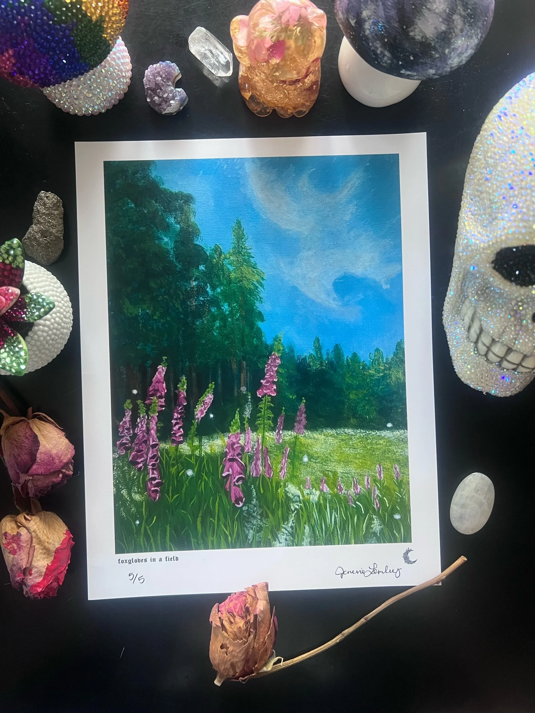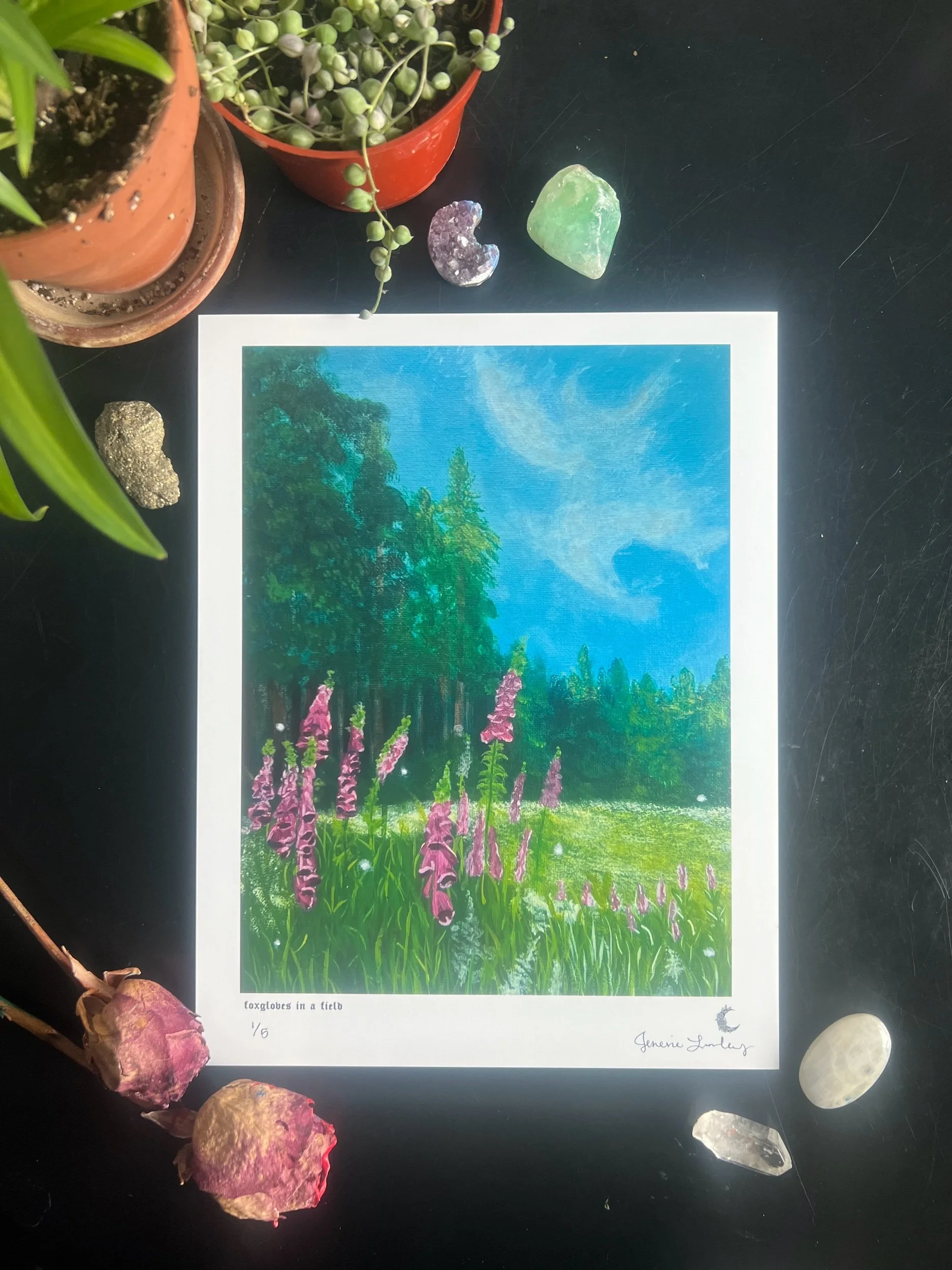 Add some joy to your office or home with this foxgloves in a field art print.