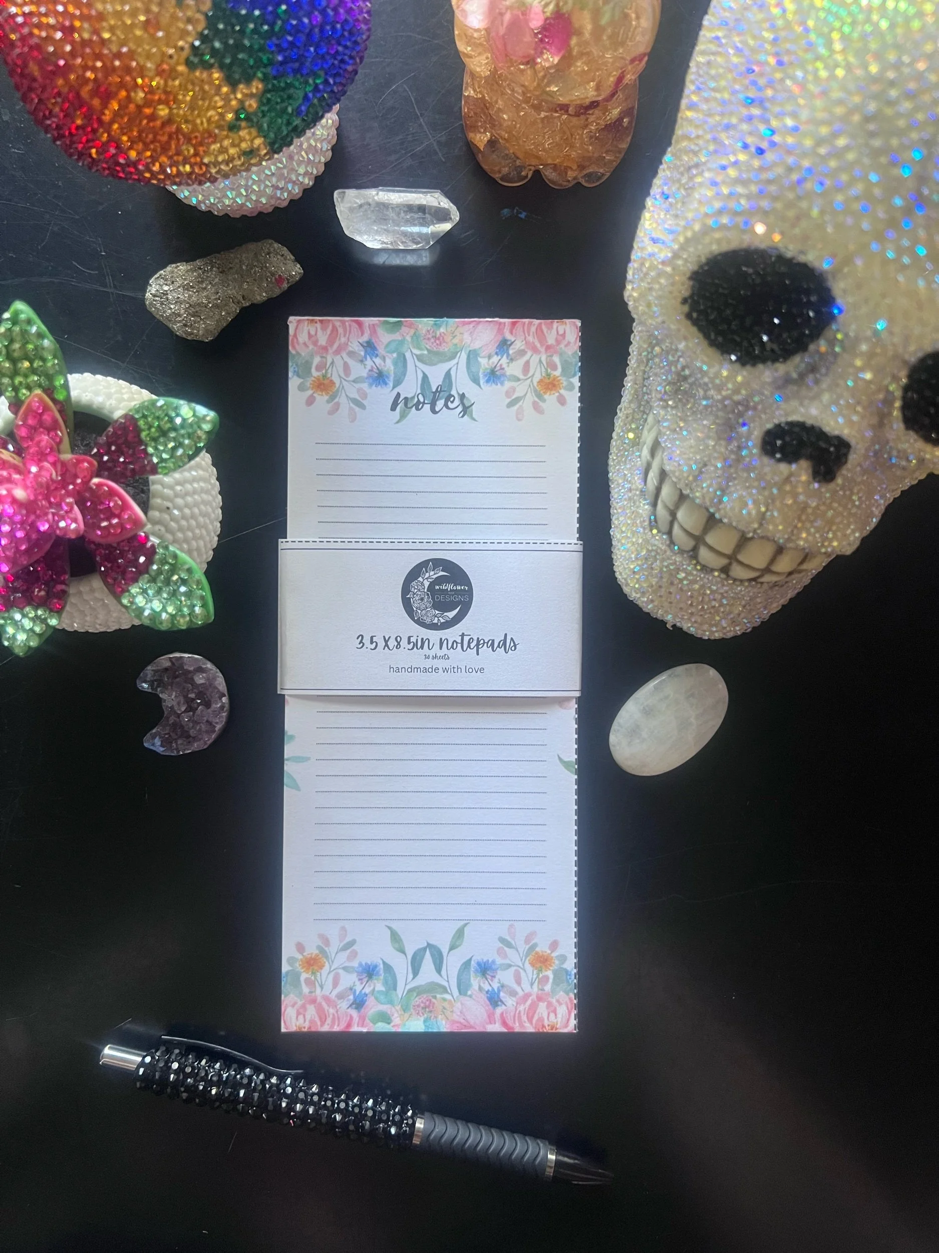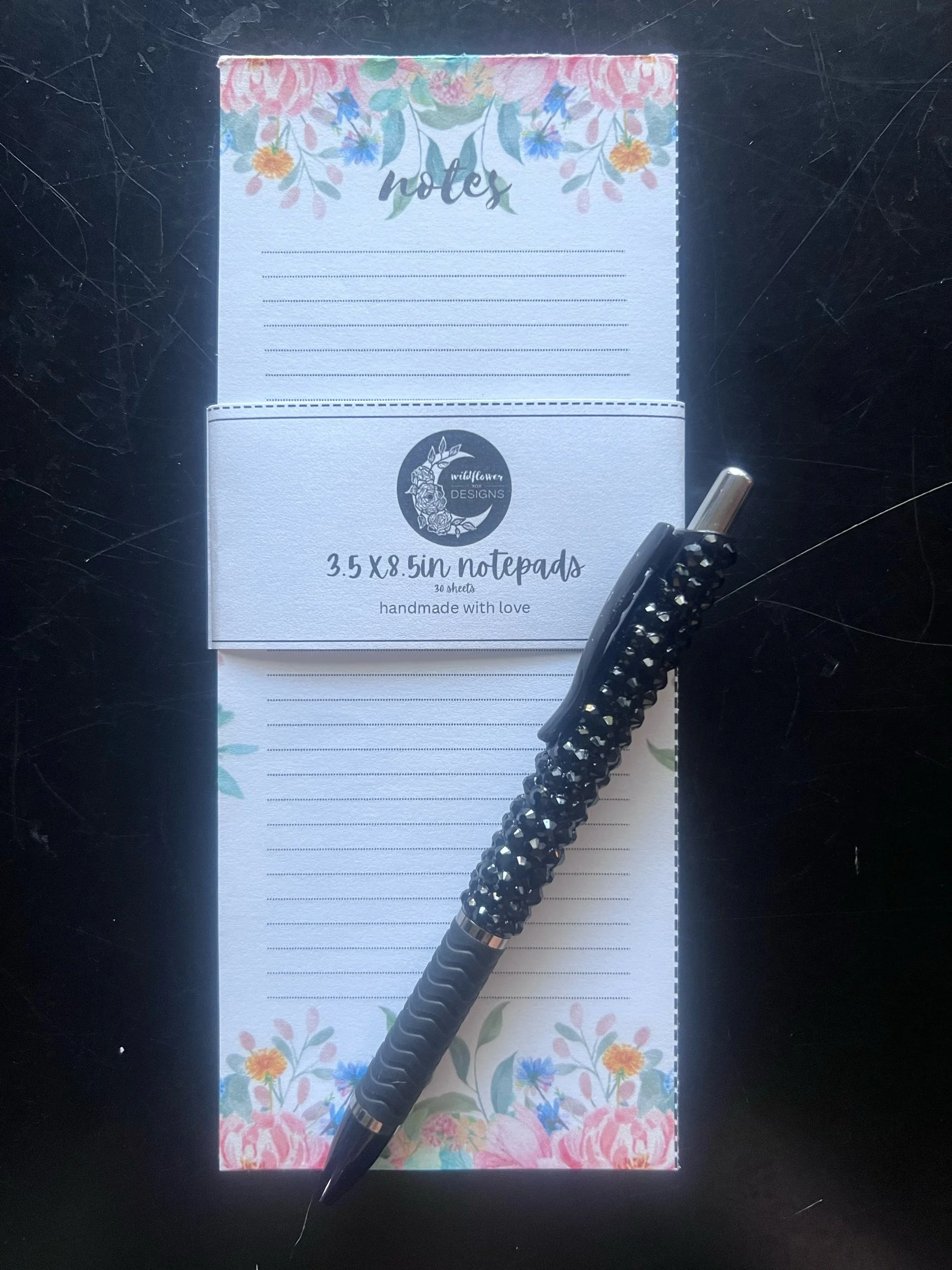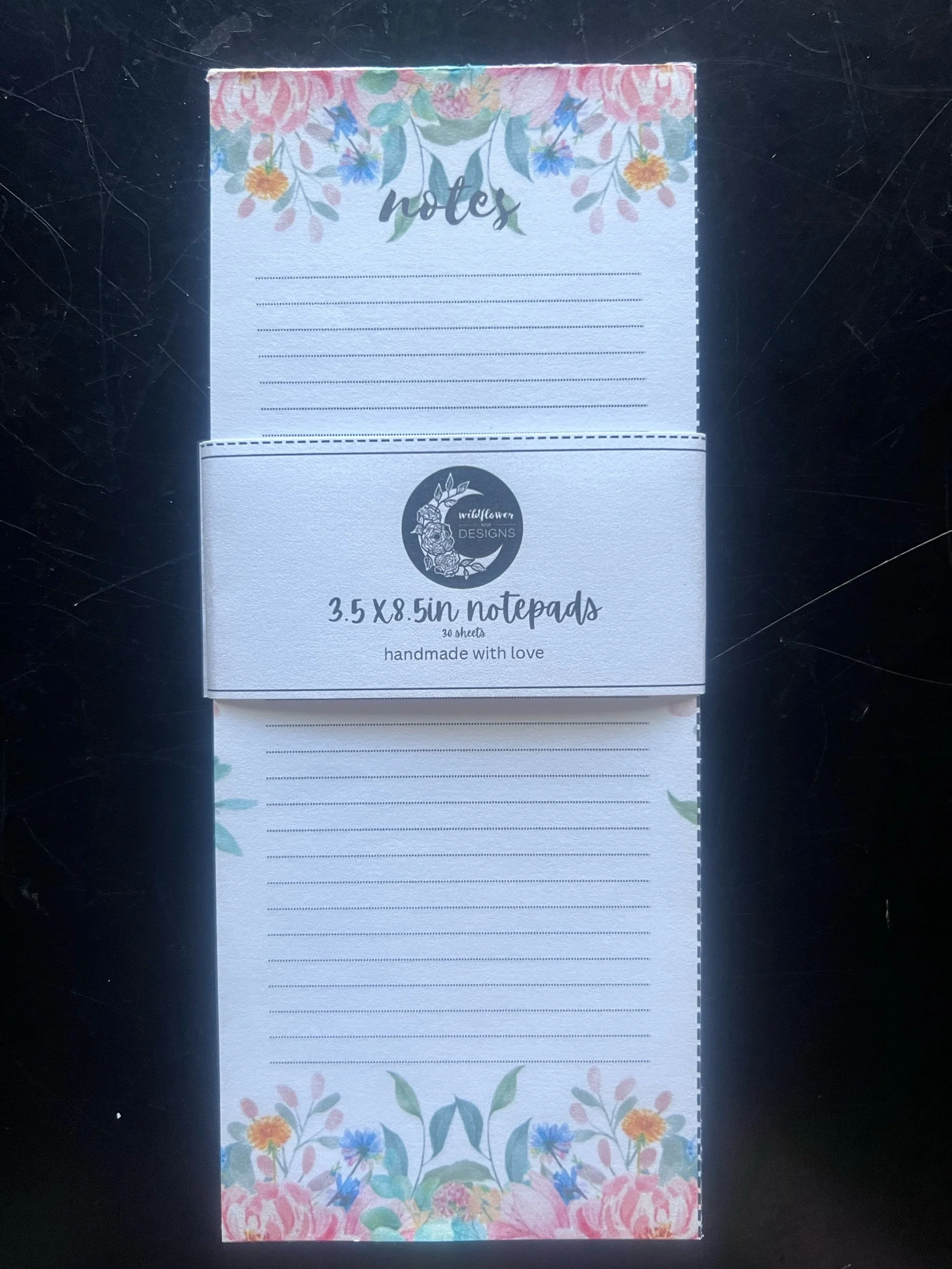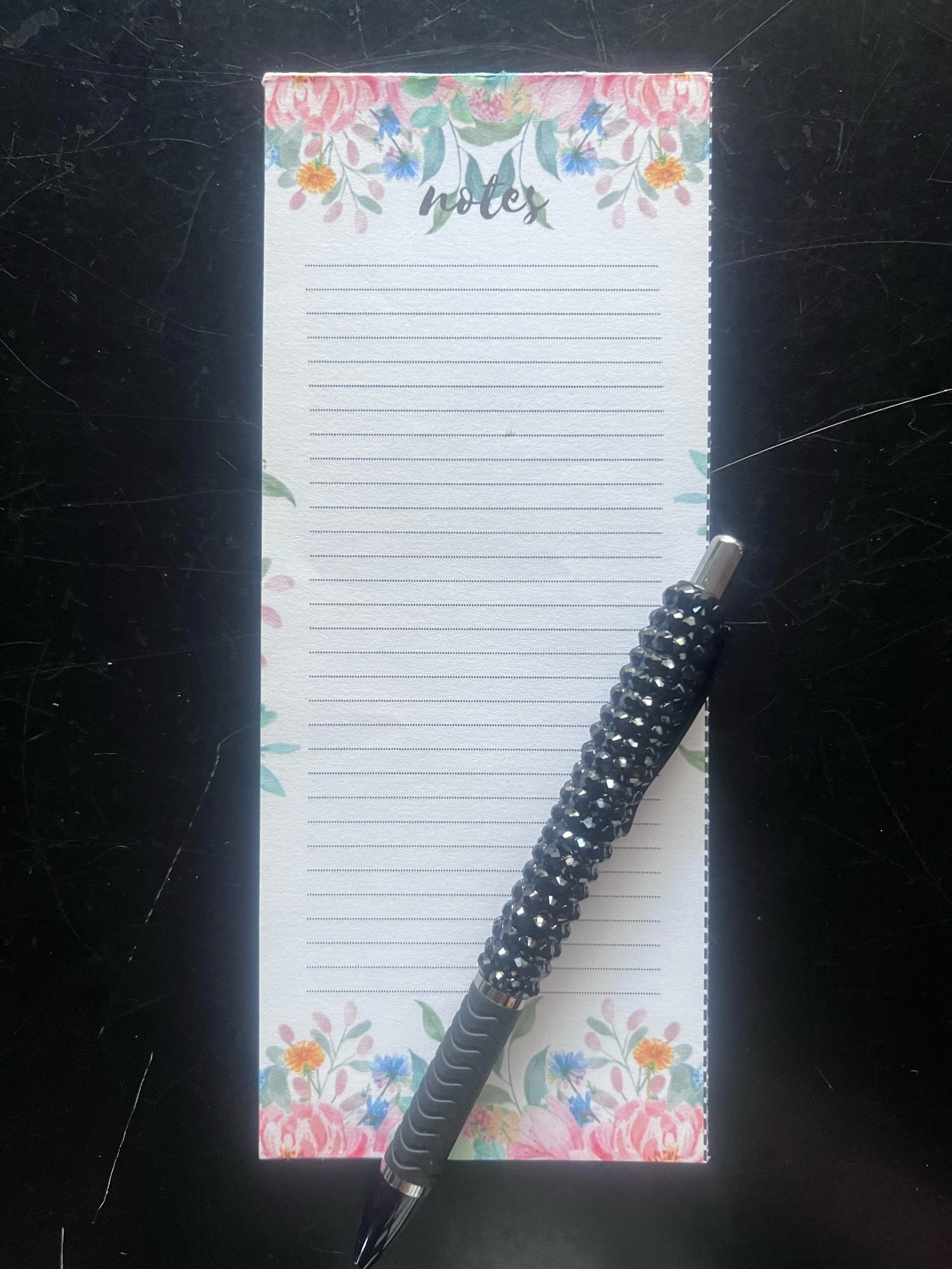 cute skinny size notepad with a floral background and a lined area for notes or list for any occasion